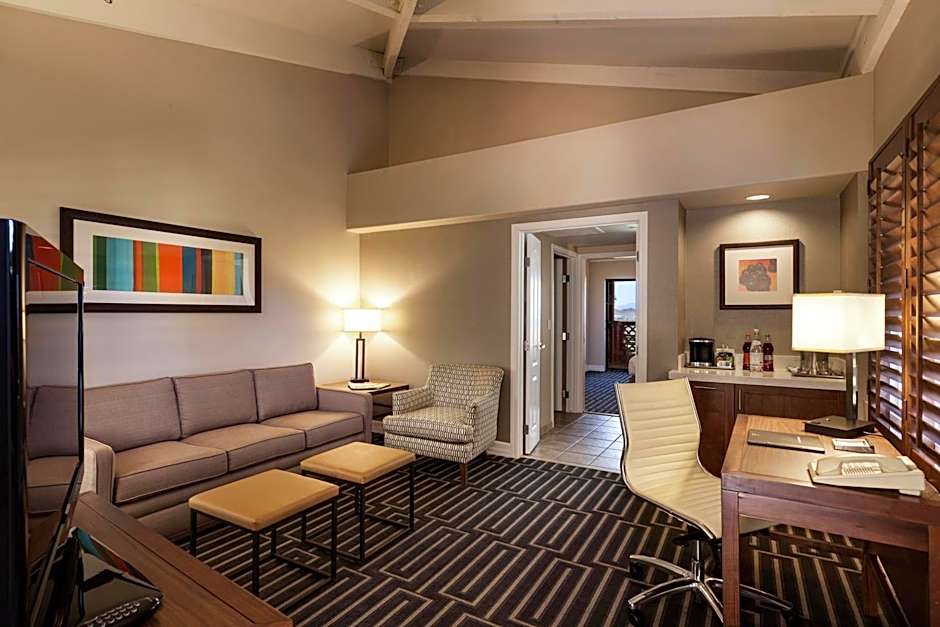 Mountain views, 2 flat-screen TVs, balcony, a mini refrigerator and work desk area featured in this room. An private bathroom is also included.
